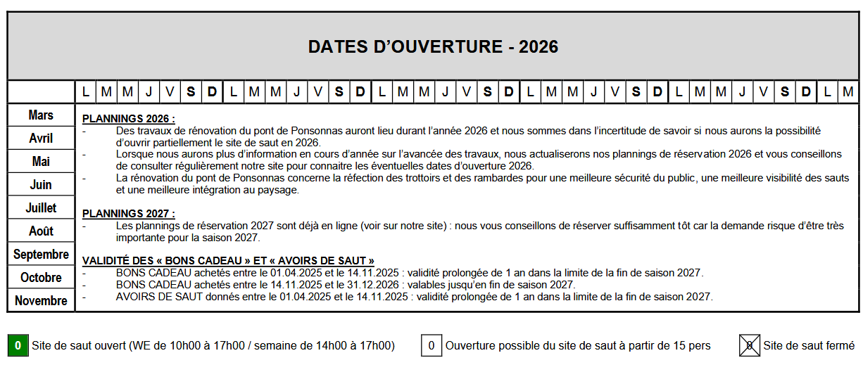 OFFRE SPECIALE : Tous les bons cadeau achetés en 2026 sont valables jusqu’en fin de saison 2027